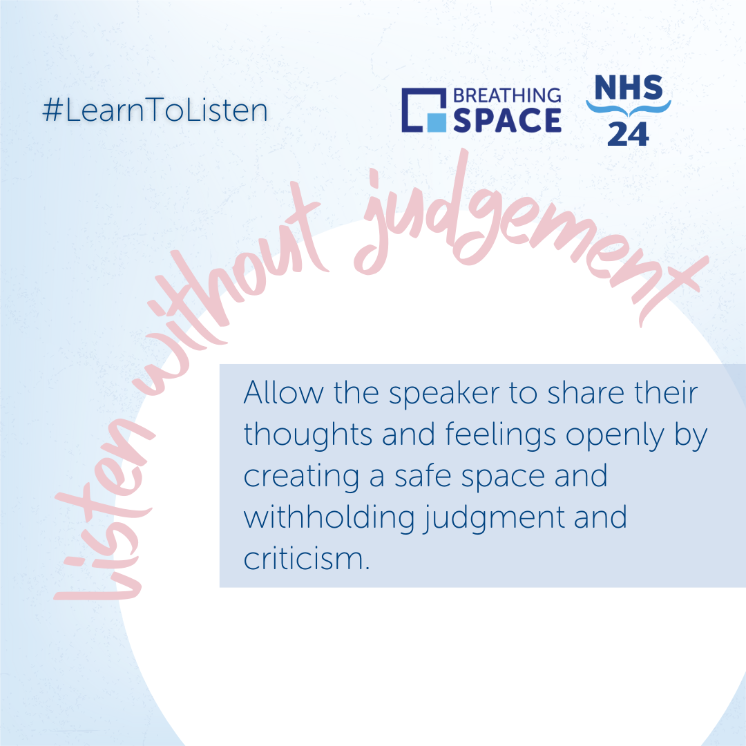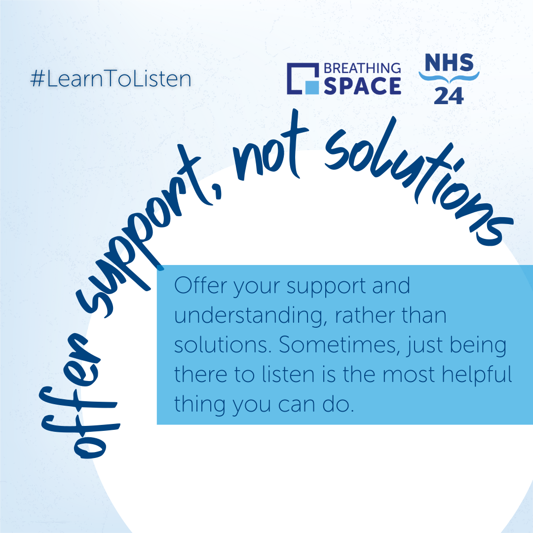 NHS 24’s Breathing Space is a free and confidential phone and web chat service available to anyone in Scotland aged 16 and over experiencing low mood, depression, or anxiety.