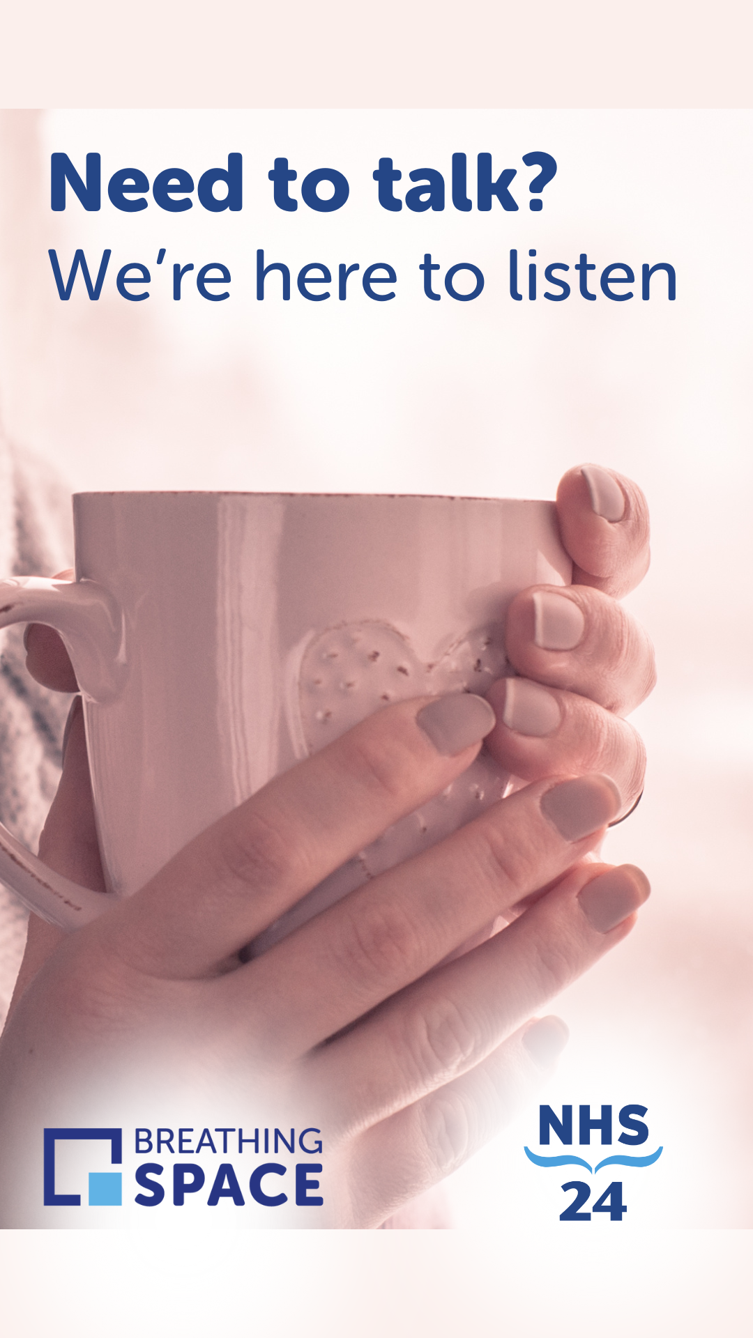 The campaign toolkit for Breathing Space and other publicity resources are available to download at the bottom of this email. Feel free to share this resource with other colleagues, teams and partners who may find it useful. Should you require any help, or wish to request assets in other formats please get in touch NHS 24's Communications Team.