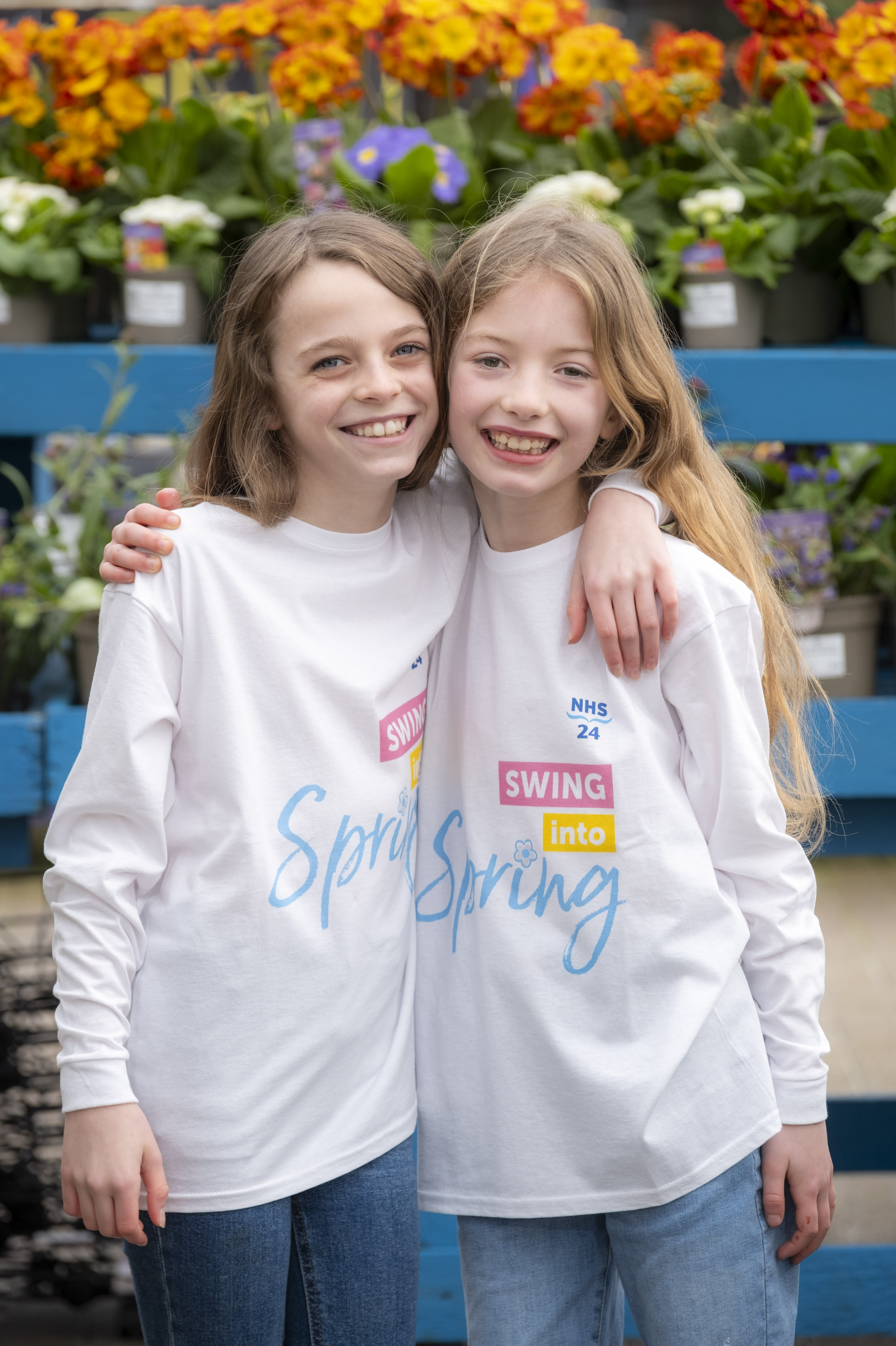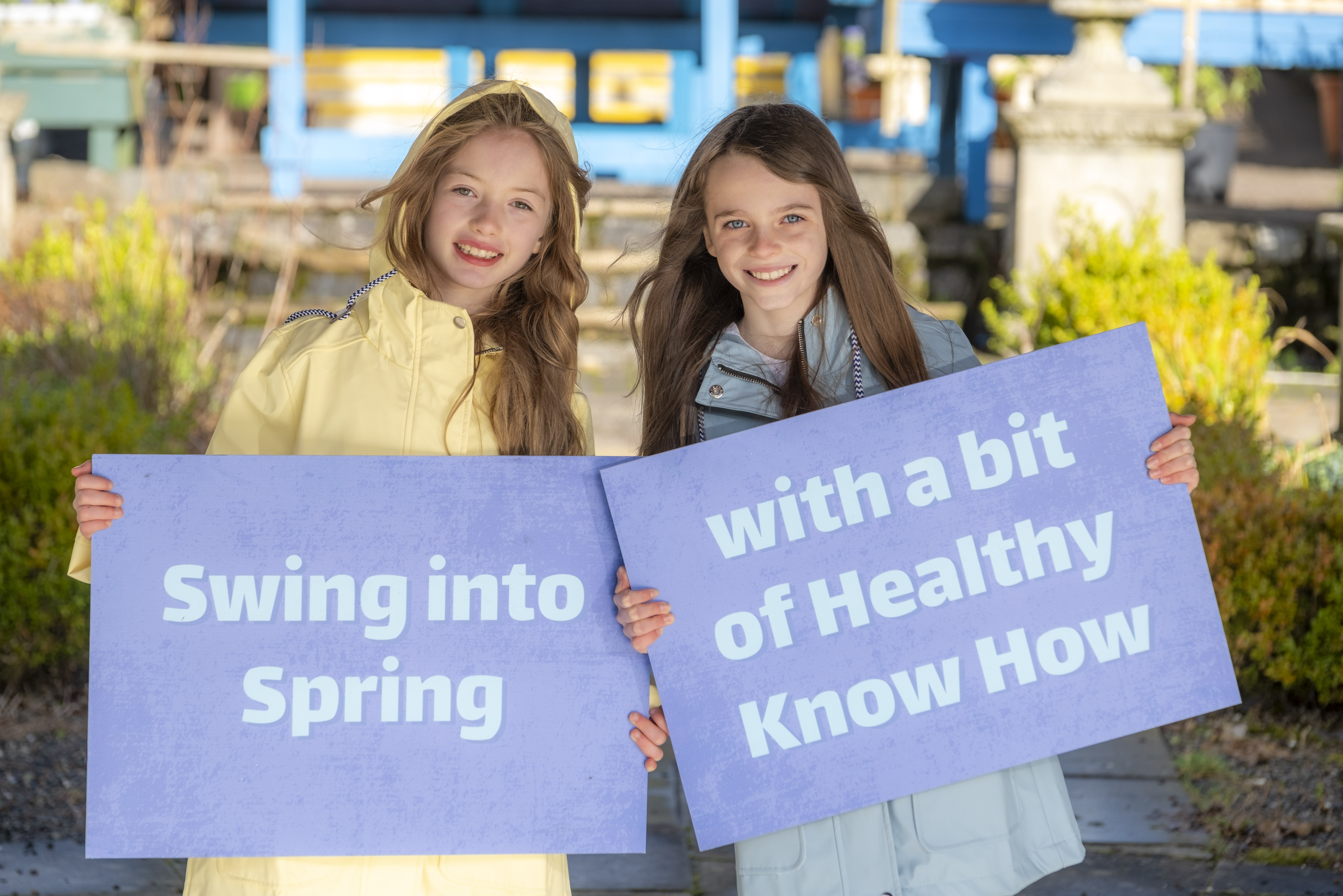 Photo - NHS 24 spring campaign 4: Phoebe Burnett (left) and Abbie Duffin (right), both 9 years old and from Bearsden, launched NHS 24's annual spring health campaign 'Healthy Know How' at Caulders Garden Centre in Mugdock.