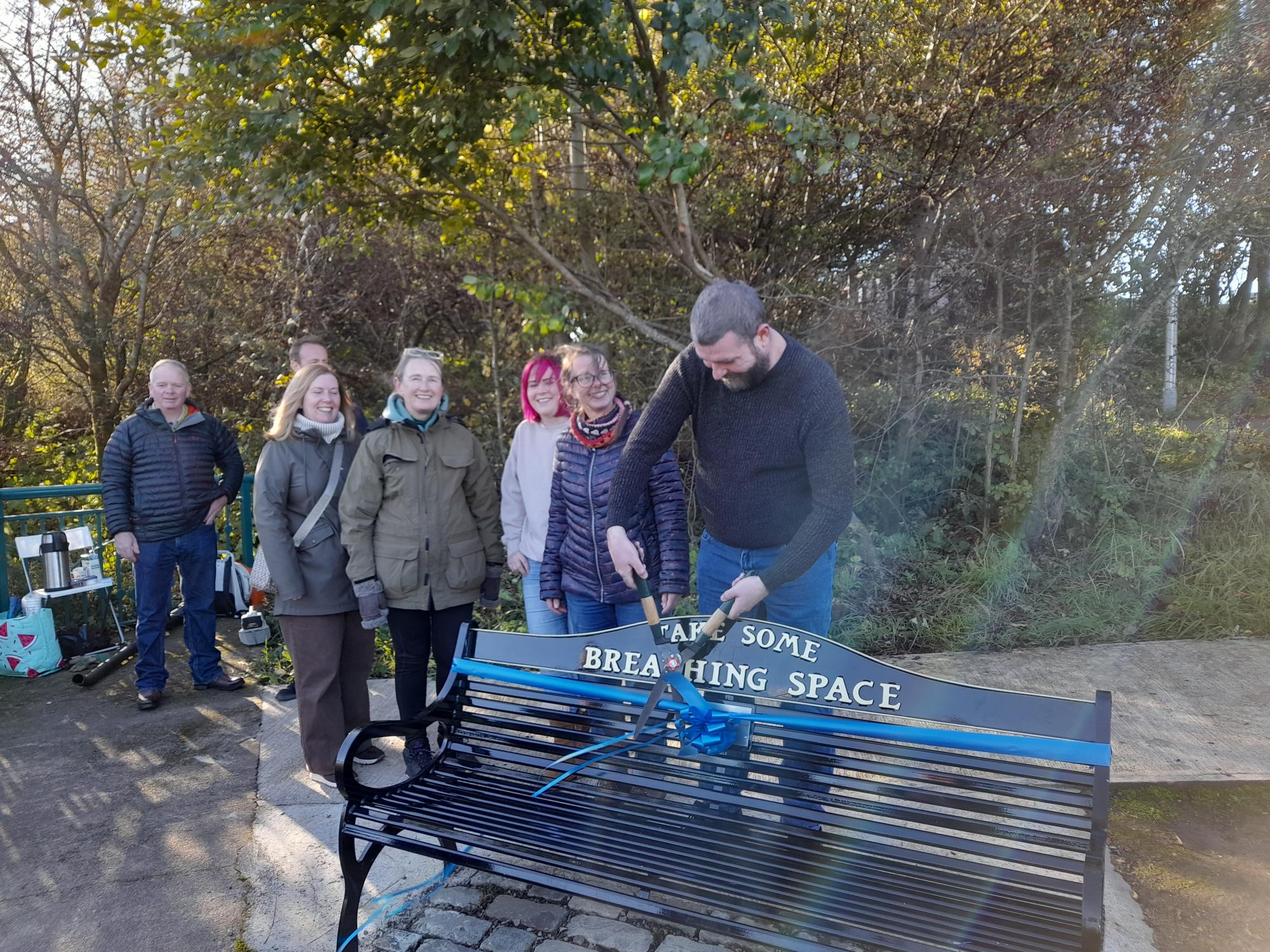 Matt Smith, a Breathing Space Supervisor since 2020 and founder of the volunteer group ‘Friends of Jenny’s Well,’ helps restore and maintain Jenny’s Well Nature Reserve in Paisley. He recently supported the unveiling of one of Breathing Space’s newest benches there.